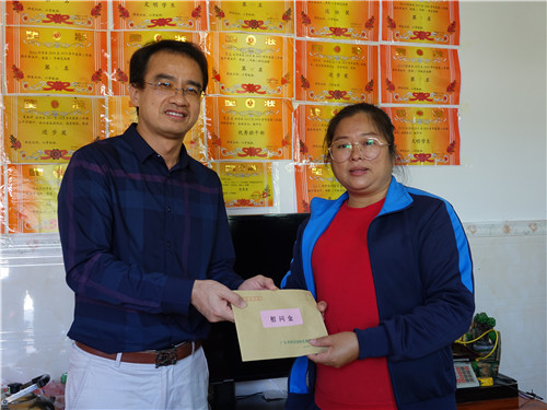 邱舟強副書記為對口幫扶的貧困戶送上慰問金